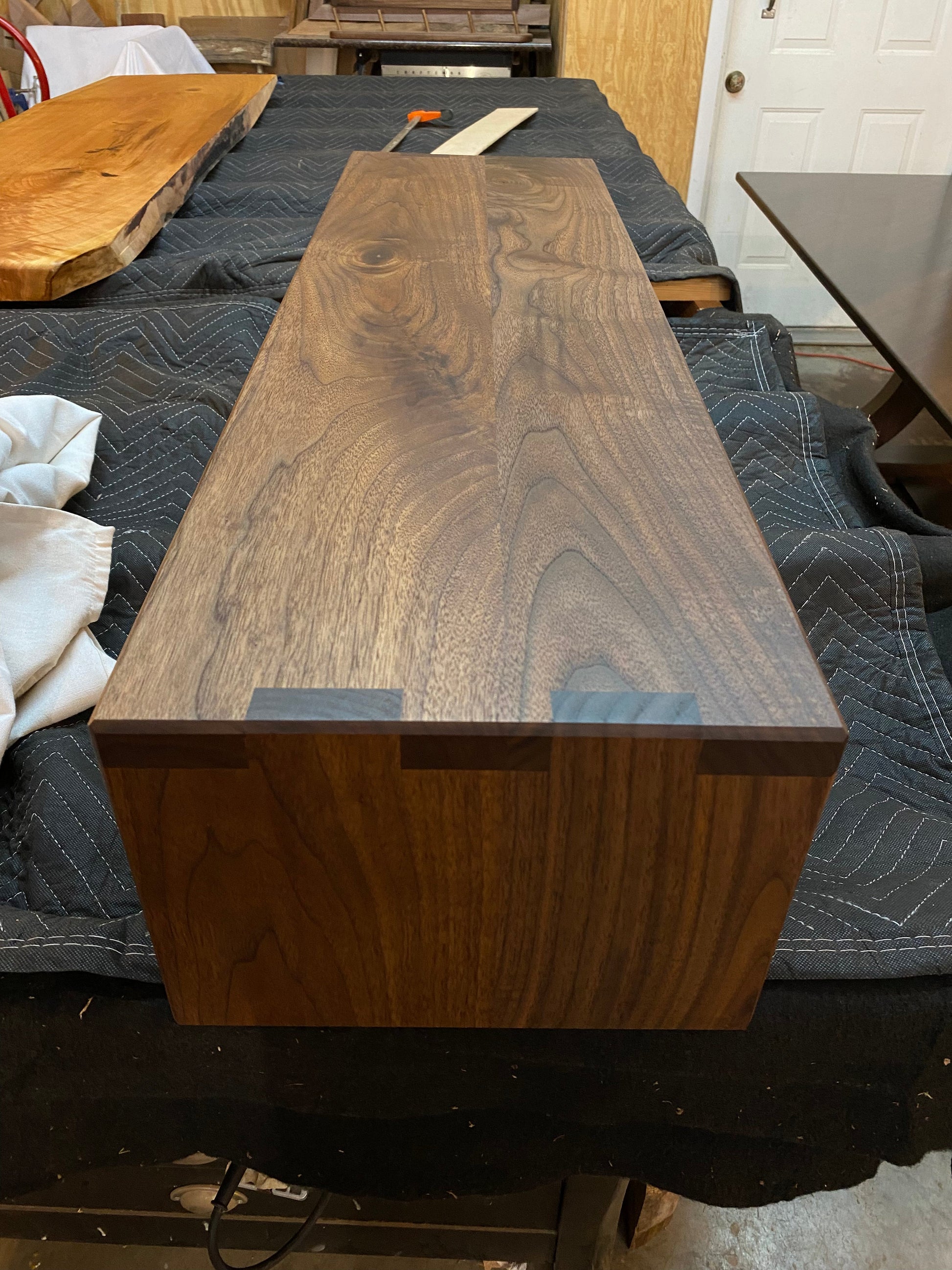 The table is sealed and finished using a combination of hard wax and varnish to both bring out the most beauty that the walnut has to offer and provide the most durable and wear resistant finish.